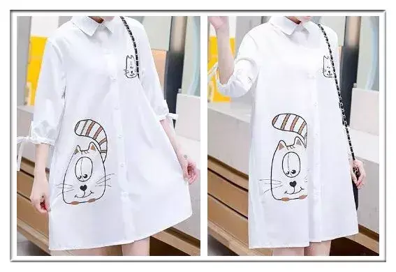 衬衫式连衣裙,优雅端庄文艺,时尚的领口,干练十足,给人职场丽人的视觉感,精致的袖口设计,修饰手臂柔美线条,时尚宽松下摆,巧妙遮挡孕妇,让你拥有少女般的好身材。