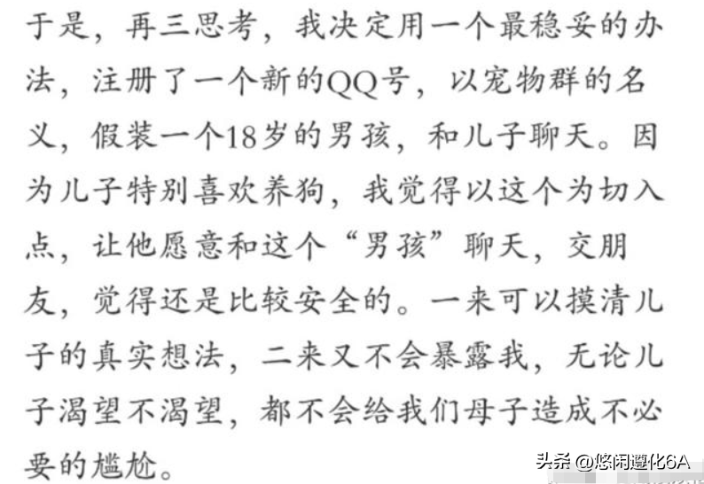 然后岁月致柔就创建了一个小号,假装自己是一个十八岁的男生,添加上了当时还只有十七岁未成年的儿子。