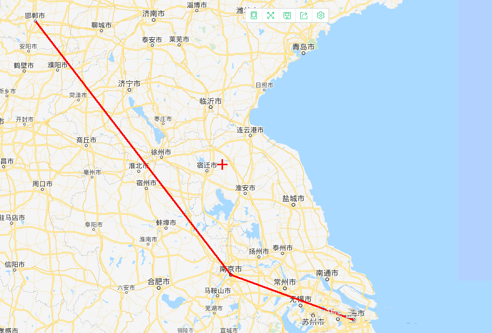 图-第一次“飞行”线路图(邯郸市-上海市)