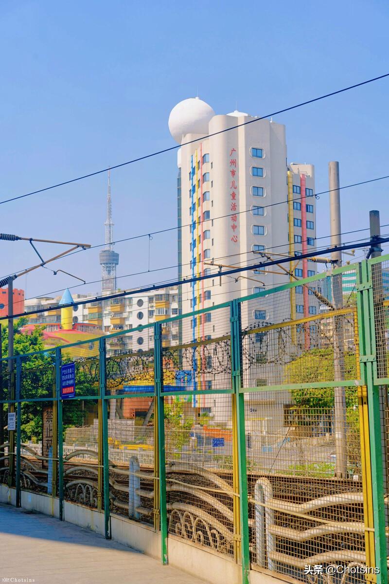电影《四海》里男女主在广州打工碰面的地方就是小北D出口往前走的天桥,在天桥上就可以看到火车铁网(背景是广州市儿童活动中心这座建筑和越秀塔),拍了一下火车铁路就去粤海关给妹妹拍照去了。