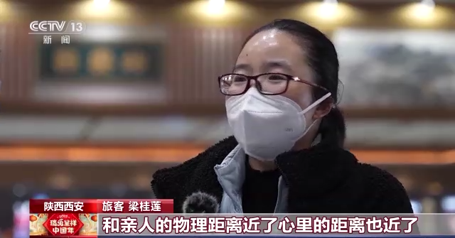 旅客 梁桂莲:物理距离近了,心里的距离也近了,家人是我们心中最柔软的地方,也是我们的盔甲。我姐姐说,爸妈其实很想你,就是怕你花很多钱,所以说一直不让你回,每次都这样说。每年我们家里都会家族聚会,我给我爸打电话的时候,我爸就会说,都来齐了,就缺你了。年年都是这句话,所以说我愧疚啊,心里面真的也是很想家的。