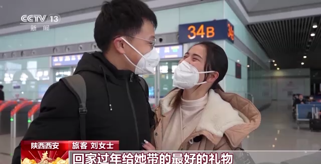 旅客 刘女士:两年半没回过家了,就想着这不谈了个对象,我妈说了这是上班以来回家过年给她带的最好的礼物。
