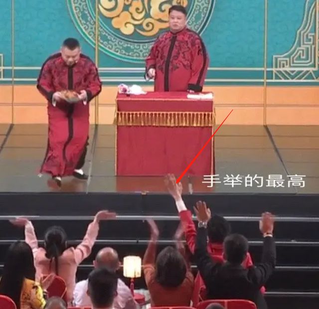 前脚刚因为外套出圈,后脚就在台下吃烧鸡。台上岳云鹏玩魔术变出烧鸡,台下张若昀抢着要。